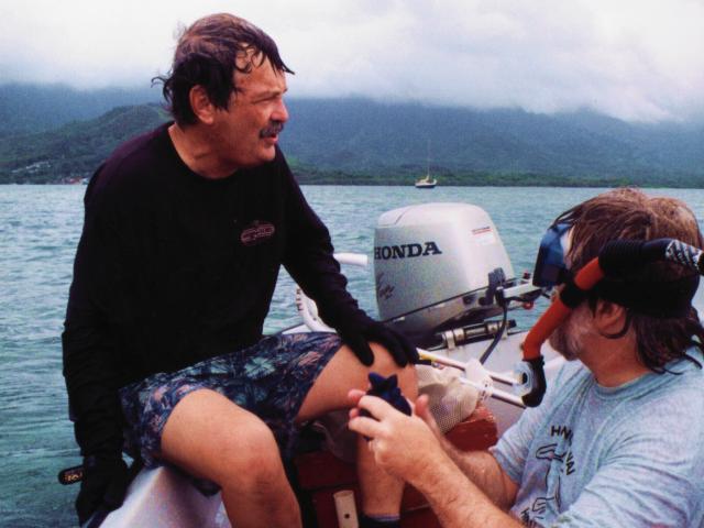 George Balazs is Leader of Marine Turtle Research for NOAA/NMFS in Honolulu. In short, he's Mr. Honu. We look forward to George's visits because we enjoy diving with him and love to introduce him to the honu here. Put simply, we delight in his company.