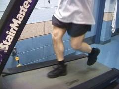We knew what the treadmill test would be like, so we simulated it on the gym's treadmill. 42K JPEG |