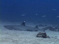 The third morning, there were three sharks and we were now outnumbered. They circled us and looked for all the world like those kids in school who hang around the bus area smoking, cussing, and looking menacing. Peter got a video he'd never planned when he happened to turn around and find one of the white tips had sneaked up from behind!