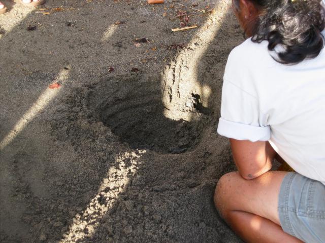In the end, the early excavation of nest 2 turned out to be a good thing. Because the nest was constantly washed by waves, the sand was being compacted. This made it much more difficult for the hatchlings to dig their way out. How many would have eventually gotten away on their own will never be known, but all concerned concluded that the excavation had been the right thing to do.