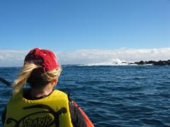 When the time came to dive, however, we realized the ocean access wasn't safe for tanks and cameras, so we went back to our original kayak/one diver attempt. Ursula was to SCUBA again but it took all of four minutes for her to return saying that diving was useless.