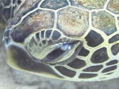 By the end of the summer, we were so sure that what we were seeing was early symptoms of fibropapilloma that we listed Makana--"gift" from the nesting grounds--as "pre-eruptive." We did this based only on the appearance of her eyes, but she was showing other white blemishes elsewhere--also harbingers of the disease.