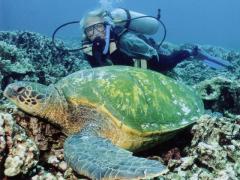 I'm ending this essay with two special pictures. The first is of Peter from last summer. It was taken just six months after his angioplasty. The sea turtle's name is Zeus. We've known Zeus since 1992.