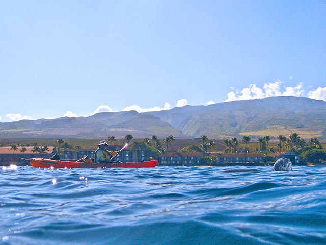 A fortuitous attempt at the ever-eulsive honu-with-kayak-background shot.