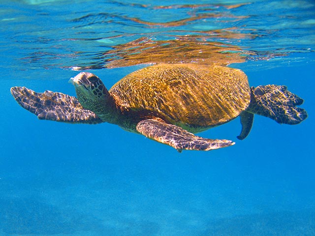 The reefs are still under pressure, but from turtles not algae. The honu crush coral by lying on it and rubbing against it. There’s relief in sight, however. If seaweed growth doesn’t increase then there won’t be any food left for the honu. The local population will drop as the turtles move on to find better foraging.