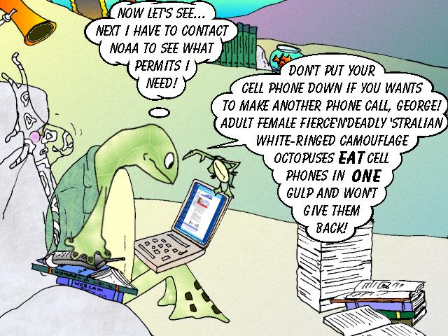 This series of toons describes the adventures of the turtles as George develops a webcam system for observing human behaviour. For news about a different kind of sea turtle webcam, see our SeaTurtleCam page.